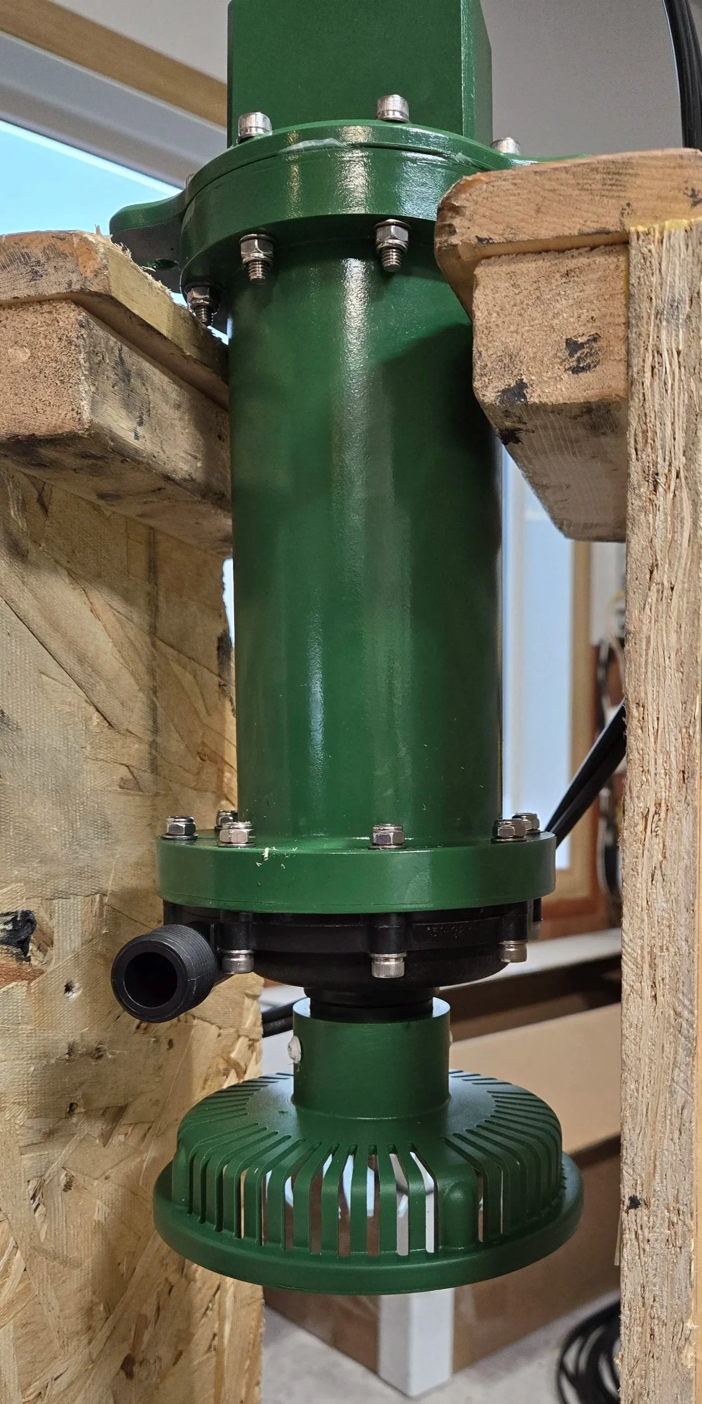 Clearfab’s Highlift Mag Pump is engineered to handle an impressive 45-foot vertical lift while maintaining efficient flow through 350 feet of 1.5" line. This pump is double sealed so it can be submerged to that same depth, making it the ideal pump for your wet well applications. (See Energy-free Stock Tank).